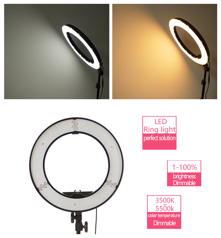 - COLOR TEMPERATURE: The led video ring light equipped with 360pcs high quality energy-saving LED beads, it can be dimmed from 3200K(warm light) to 5500K(day light) to get tungsten and daylight environments,ideal for make up, selfie, live webcast, Youtube video shooting